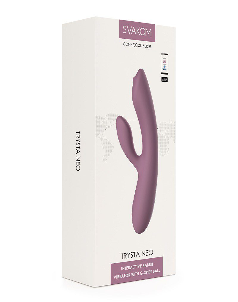 πΈΒ Experience the interactive rabbit vibrator that goes beyond vibrating. Bring your body and mind into harmony with the Svakom Trysta Neo. This soft ergonomic rabbit vibrator offers targeted G-spot stimulation via a rotating ball in the shaft that subtly massages you deep inside. At the same time, the flexible arm provides intense, yet soft clitoral stimulation, tuned to your natural rhythm. This state-of-the-art vibrator is app-controlled and interactive.